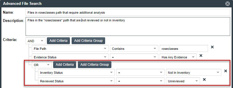 10. To add a group of criteria that serves as a criterion, click Add Criteria Group, and repeat steps a through c to create the group.